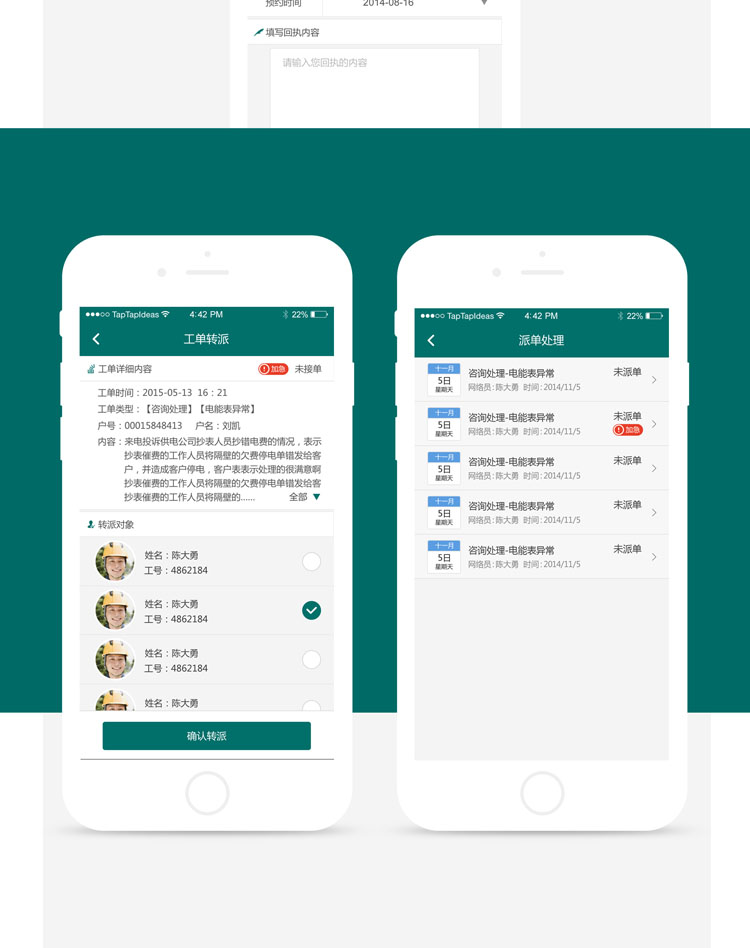 功能:在线派单、手机接单、导航上门、现场采集、实时反馈、数据归集、绩效连接等