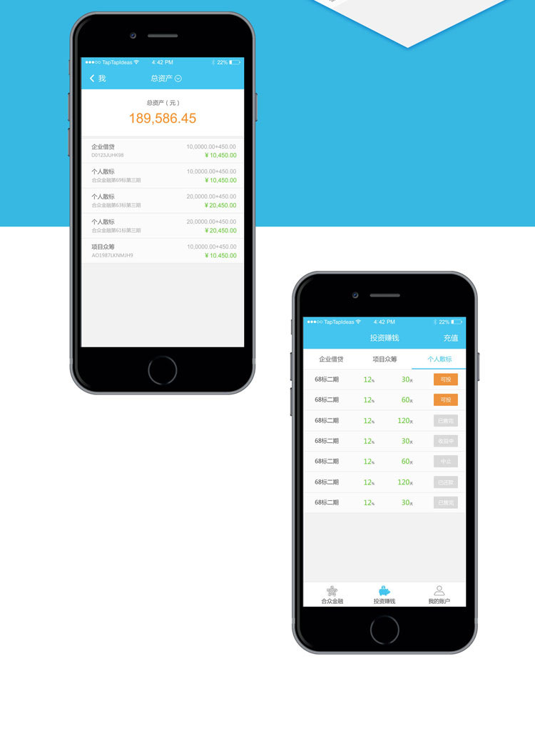 功能:互联网金融,在线投资,利息收益运算,资金帐户管理,第三方支付对接