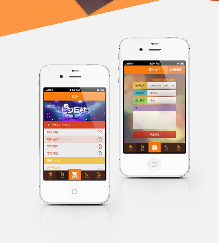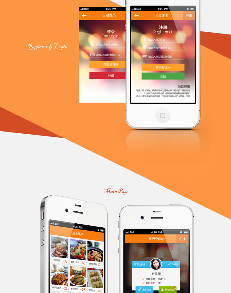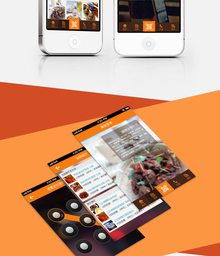 功能:预约点餐,到店即食,在线充值,距离推送,分级折扣、手势密保