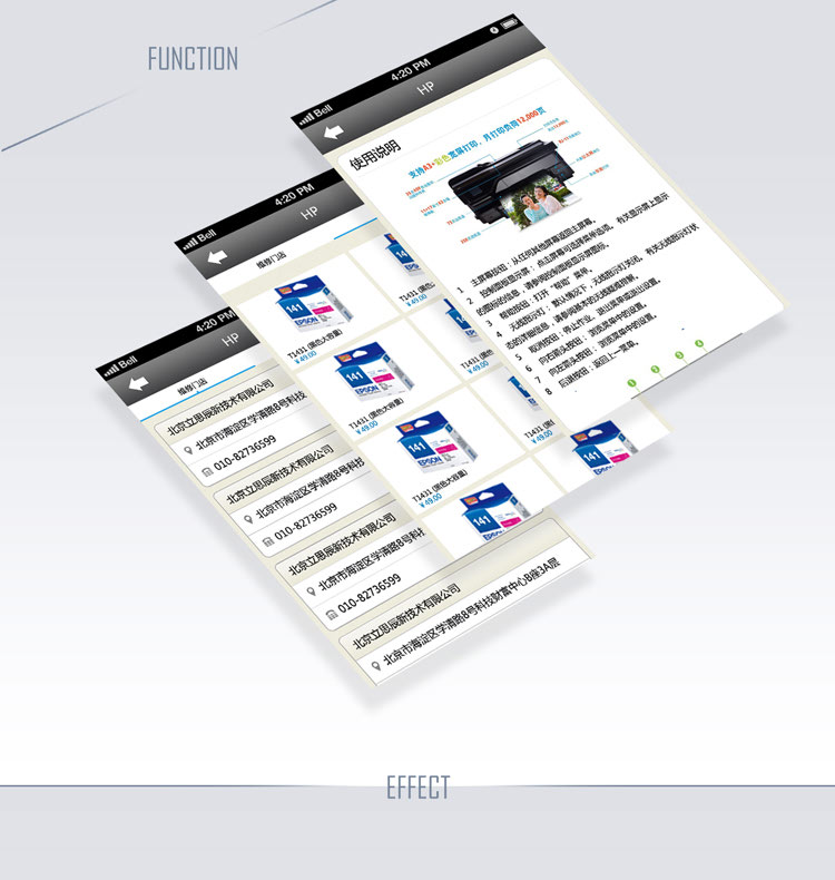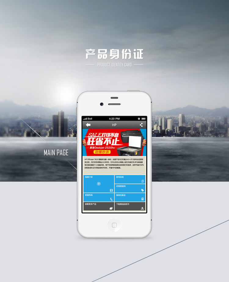 功能:扫描产品二维码或特殊图形,识别产品及其操作说明,相关耗材购买,维修点索引