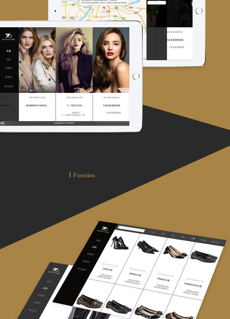 功能:专题推荐、货品展示、超清图集、店铺地图、现场销辅