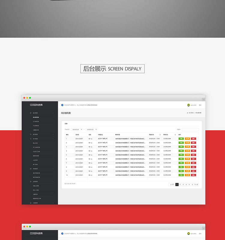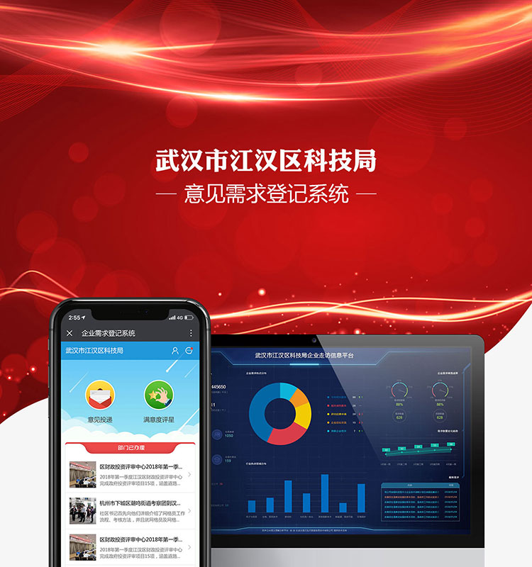 功能:企业需求登记、个人意见反馈,局系统多角色管控平台及指挥中心系统。