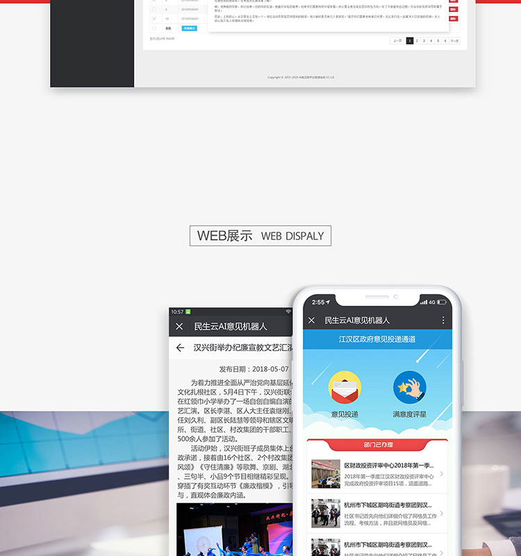 海量意见收集、AI语意理解、极性观点抽取、自动管辖分拨,多终端跨多机构管理一体化系统平台。
